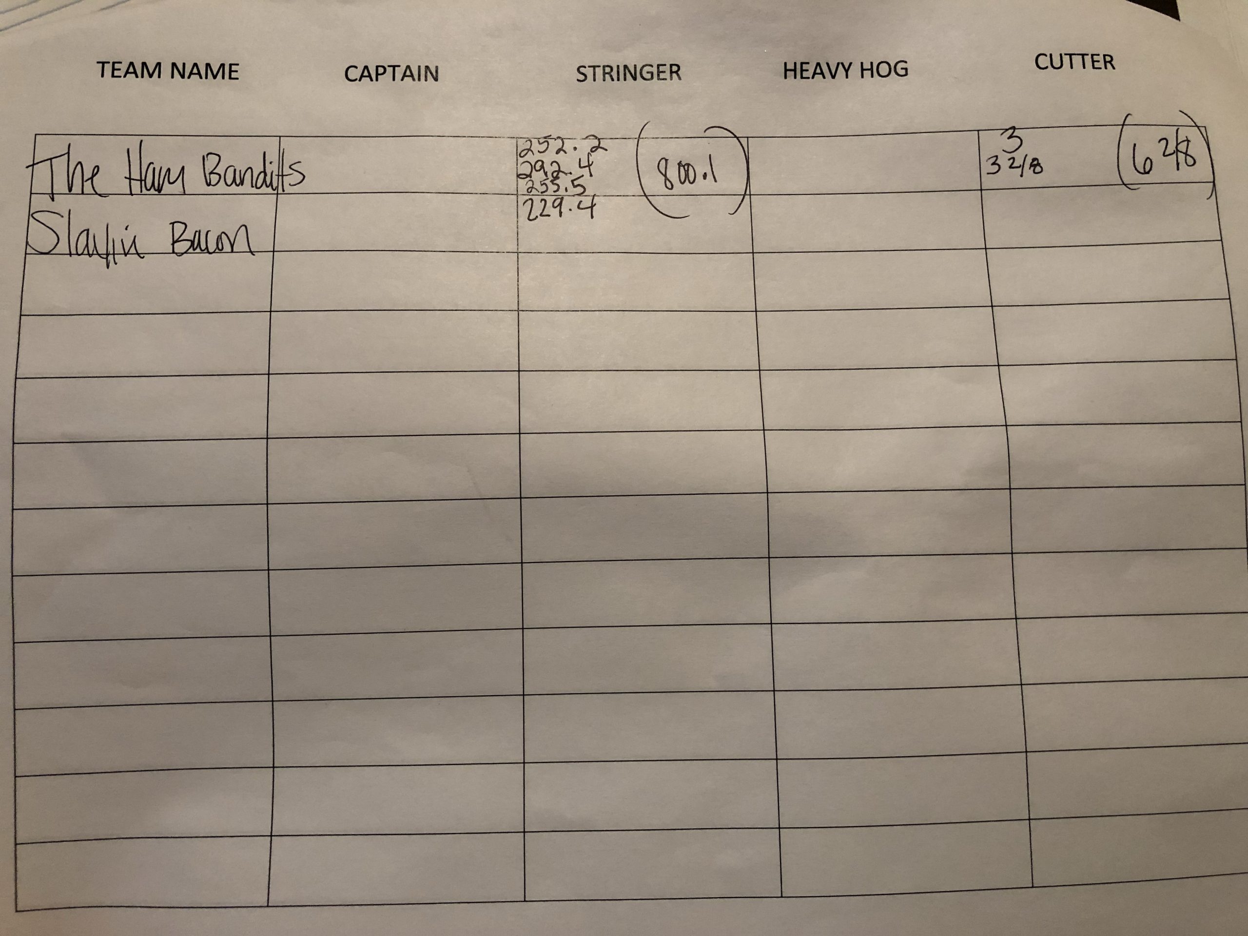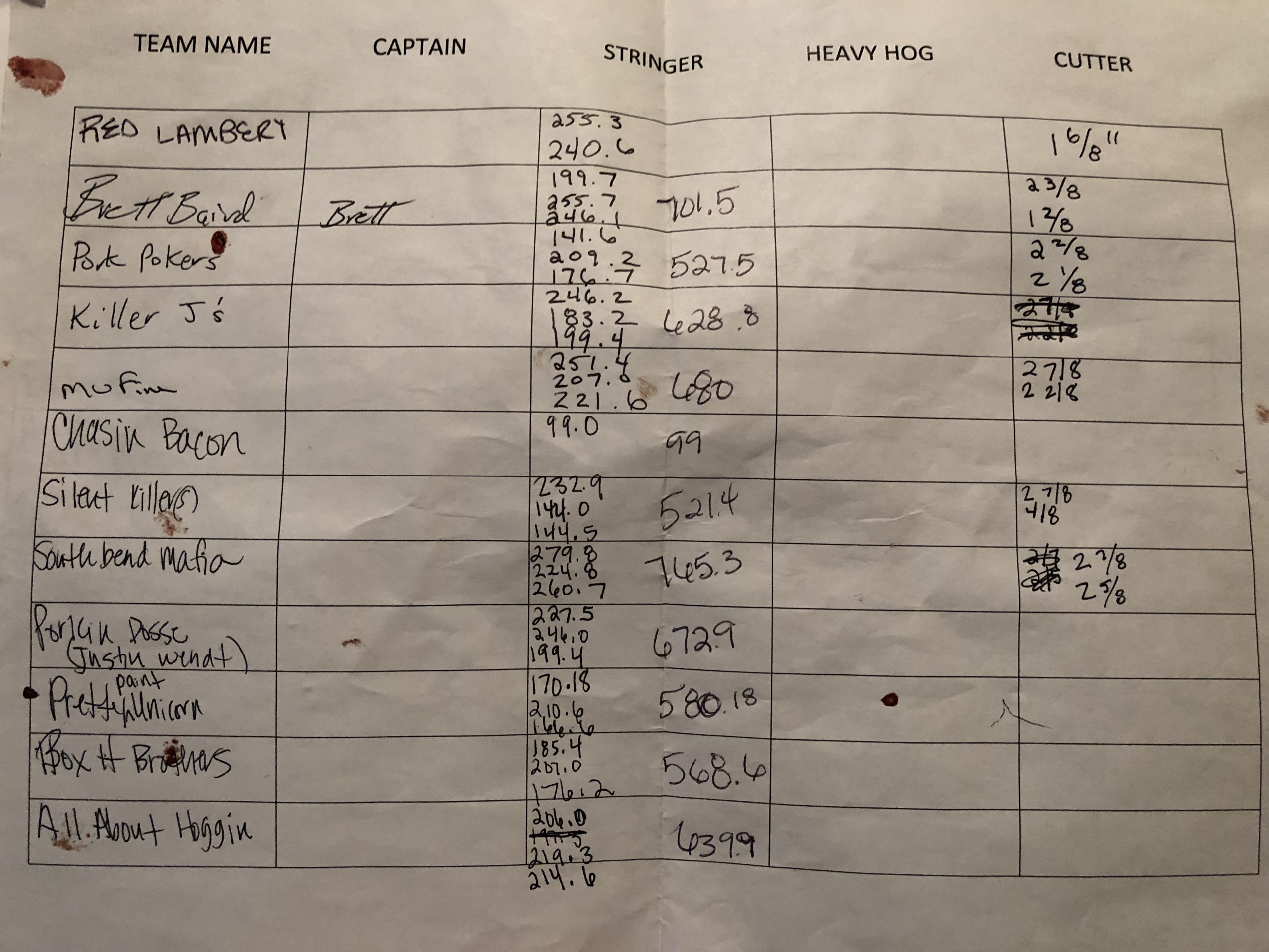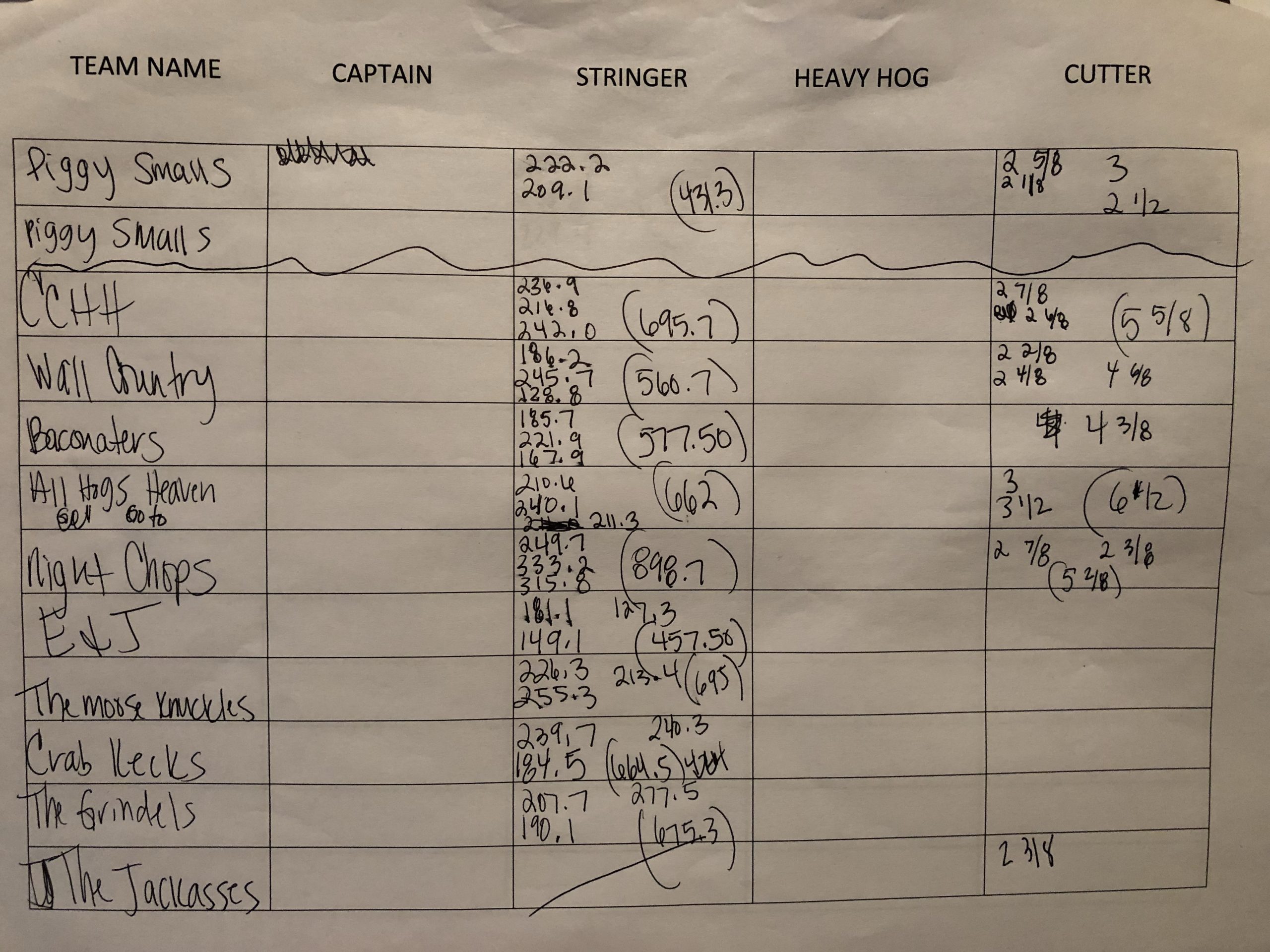 Night Chops Won Heaviest Hog (33 lbs.) and 3 Hog Stringer (898 lbs.) $3636